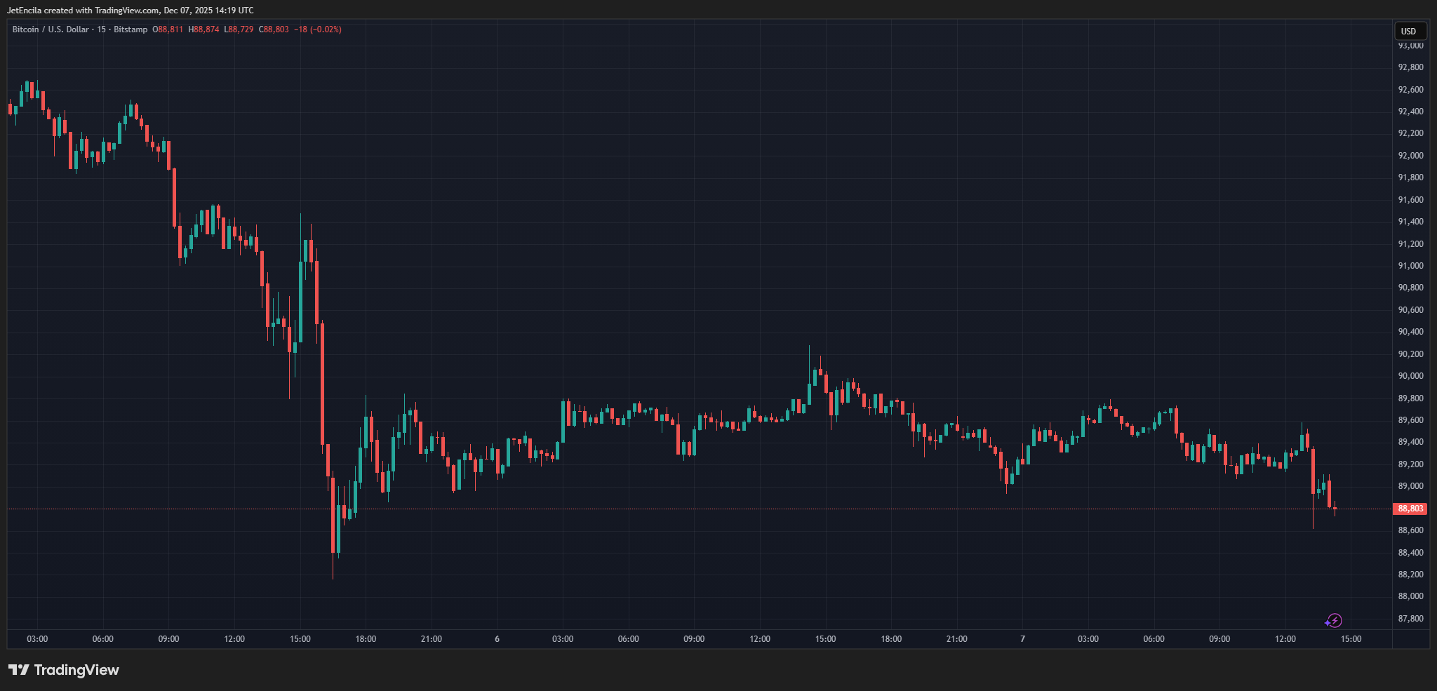 BTCUSD:n kauppa on tällä hetkellä 88 803 dollaria. Kaavio: TradingView