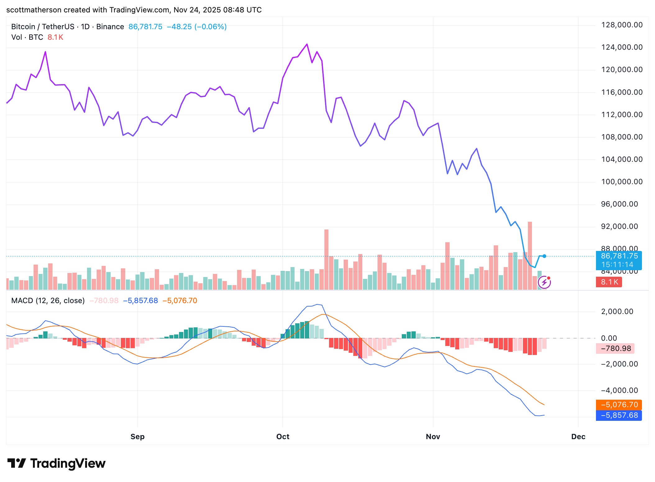 Kirjoitushetkellä Bitcoinin hinta käy kauppaa noin 87 500 dollarissa, mikä on lähes 2 % nousua viimeisen 24 tunnin aikana CoinMarketCapin tietojen mukaan.