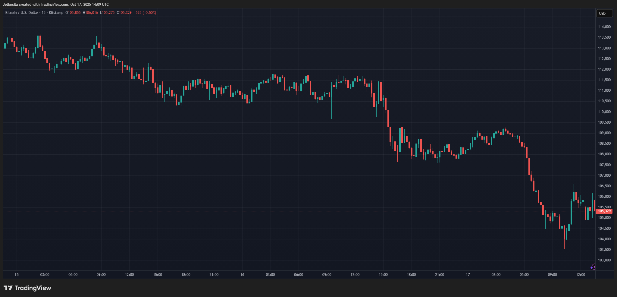 Bitcoinilla käydään tällä hetkellä 105 329 dollaria. Kaavio: Kaupankäynti Näytä kuinka kauppiaat puhuvat “digitaalisesta kullasta”