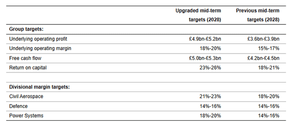 Sen perustana oleva osakekohtainen tulos oli 29,44 penniä, mikä tarkoittaa, että osakkeen kauppa on nyt 47-kertainen historialliseen tulokseen verrattuna. Mutta mielestäni tämä on hyväksyttävämpää, koska Rolls-Royce paransi myös massiivisesti keskipitkän aikavälin tavoitteitaan (2028), mukaan lukien ilmoittamalla oman pääoman tuotto-odotuksensa merkittävästä noususta.