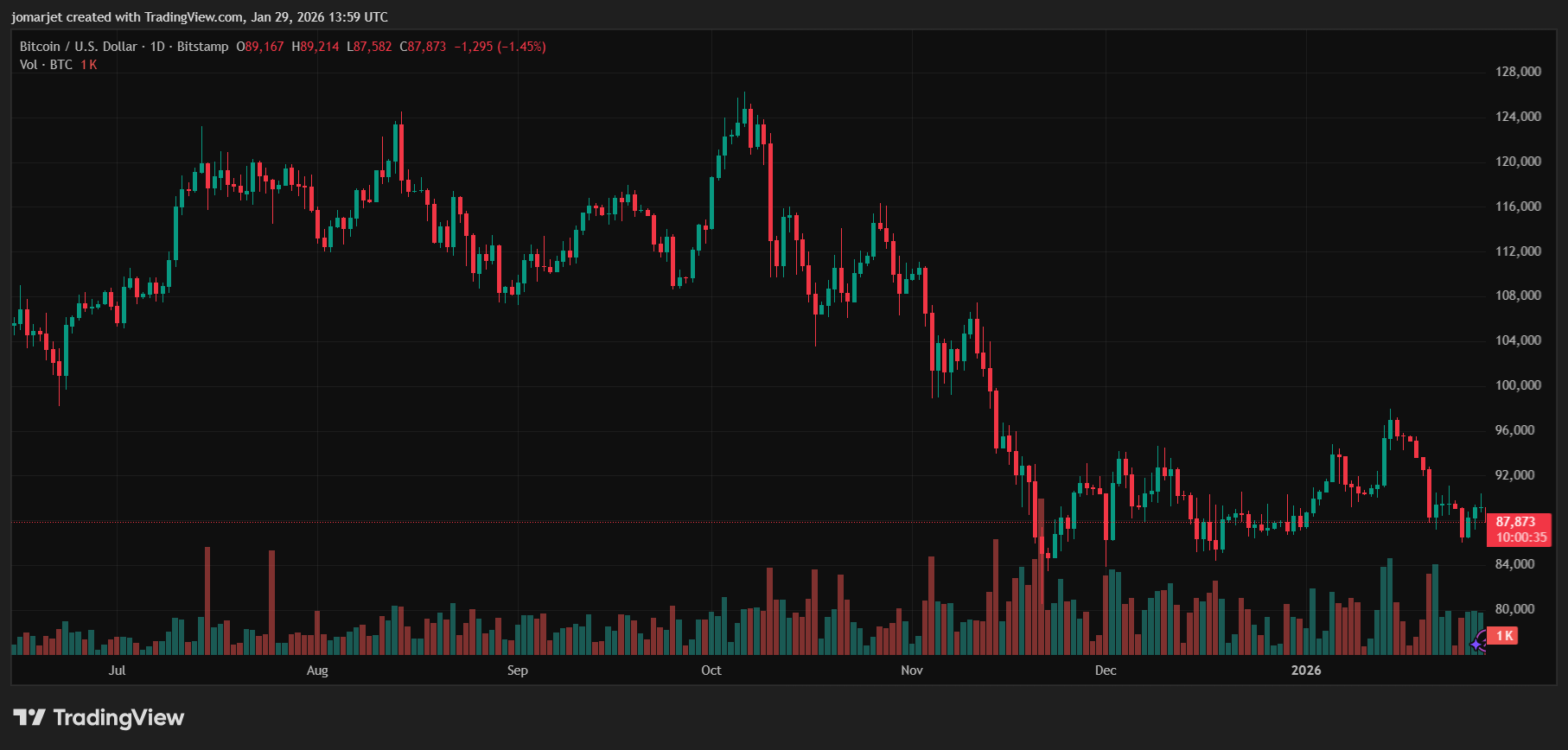 Bitcoinin kauppa on nyt 87 873 dollaria. Kaavio: TradingView Crypto Companies vetää takaisin