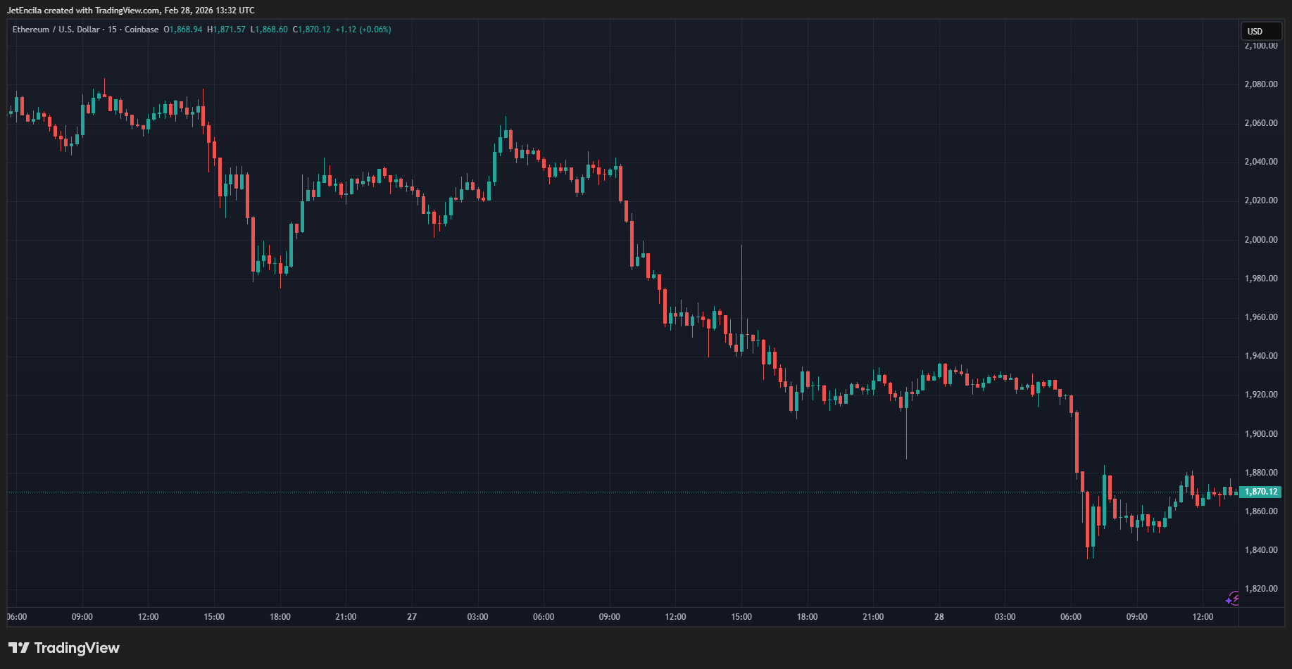 ETHUSD:n arvo on tällä hetkellä 1 870 dollaria. Kaavio: TradingView