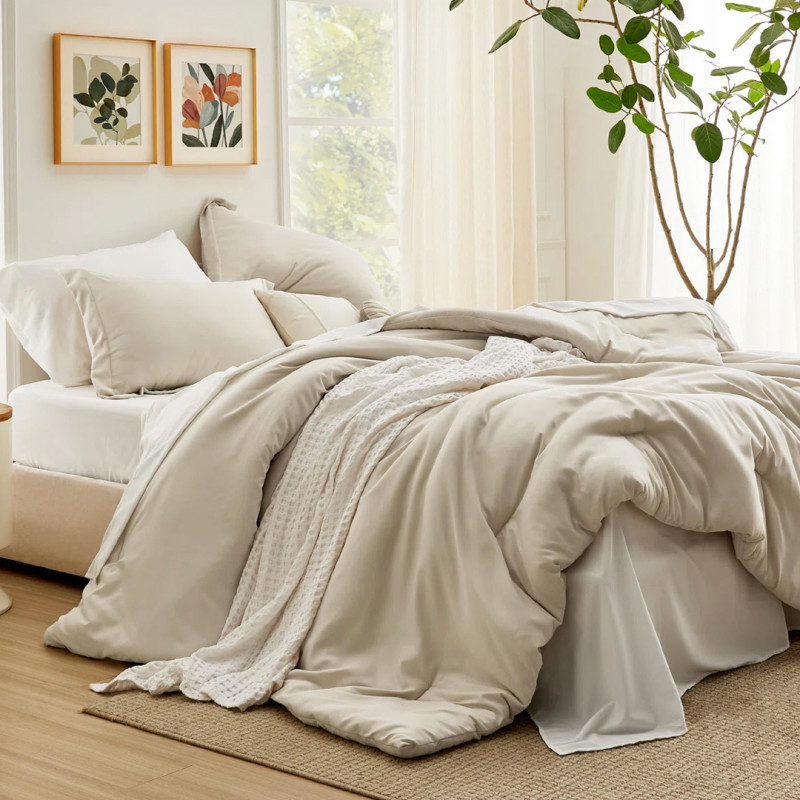 Tiedämme, että monet ihmiset ovat hyvin erimielisiä valitessaan peittojen ja tavallisten peittojen välillä, ja jos olet yksi niistä, jotka haluavat pitää asian yksinkertaisena painikkeiden ja solmioiden avulla pitääksesi vuodevaatteet puhtaana ja siistinä, tulet rakastamaan Bedsure Boho 7-osaista All Season -vuodevaatteet settiä.