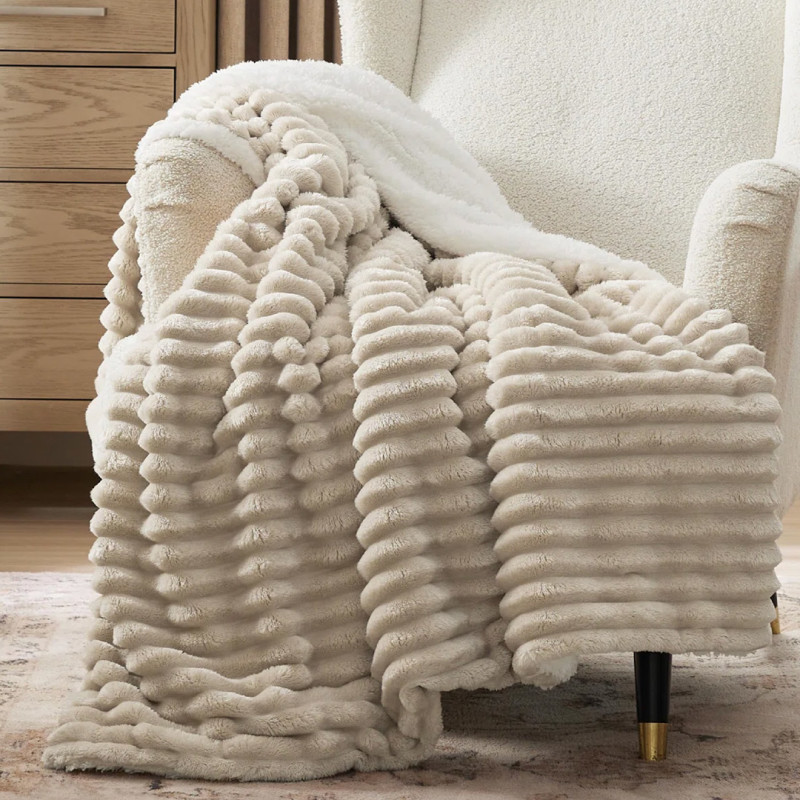 Saatavana peitona tai parivuoteella, queen-size-vuoteella ja king-sängyllä sekä 12 värissä, tämä peitto on se, mitä ajattelemme kuullessaan sanan “mukava”. Valmistettu polyesterifleecestä ja Sherpa-kankaasta sekä täytetty polyesterimateriaalilla pehmusteena. Tämä peitto on poikkeuksellisen pehmeä ja täydellinen pitämään sinut lämpimänä sekä sisältä että ulkoa. Käytä sitä sängyssä lisäeristyksenä yöllä, kääri se ympärillesi sohvalla lukiessasi tai katsoessasi televisiota tai pitääksesi kylmän loitolla, kun olet ulkona patiolla ja aurinko alkaa laskea. Käännettävässä peitossa on kaksi puolta: toisessa pystyraidallinen pörröinen fleecepinta ja toisessa pörröinen sherpa, joka sopii täydellisesti tilanteisiin, jolloin kaipaat vähän lisälämpöä. Laadun säilyttämiseksi on parasta pestä kylmänä hellävaraisella pesuohjelmalla erillään muista vaatteista ja sitten rumpukuivaus matalalla. Se on täydellinen kodikas lisävaruste sänkyyn, joka on sekä toimiva että tyylikäs, ja vain 33 dollarilla alkuperäisen 180 dollarin sijaan se on melko edullinen.