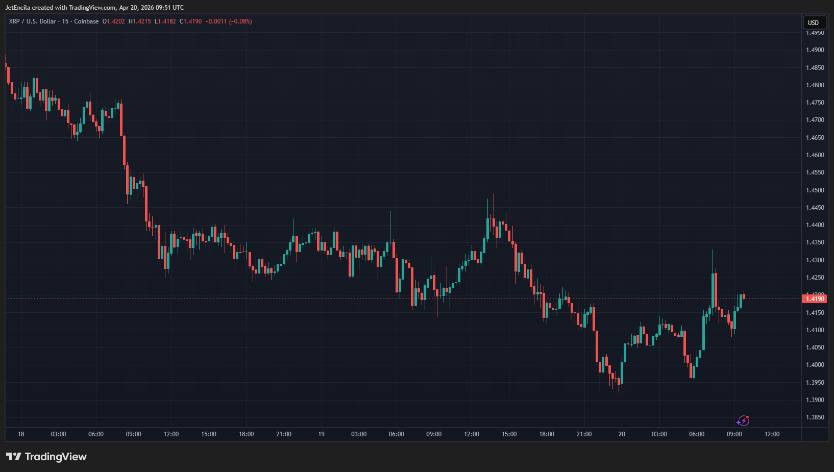 XRPUSD käy kauppaa 1,41 dollarilla 24 tunnin kaaviossa: TradingView on laajempi peli kuin rajat ylittävät maksut
